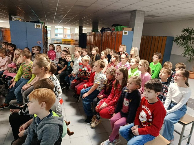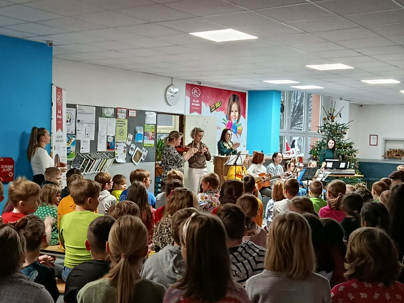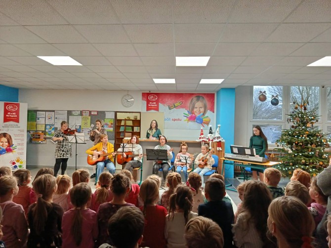 Atmosféru zpříjemnila kapela složená z našich učitelek a vychovatelek, která doprovázela zpěv na hudební nástroje. Všichni si s chutí zazpívali známé koledy, od „Nesem vám noviny" až po další tradiční písně, které k Vánocům neodmyslitelně patří.
