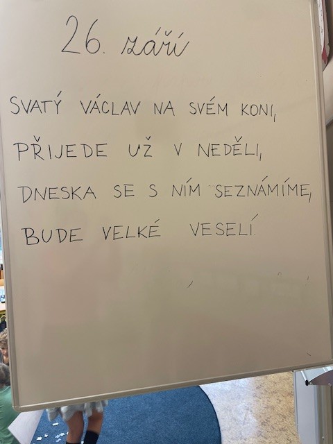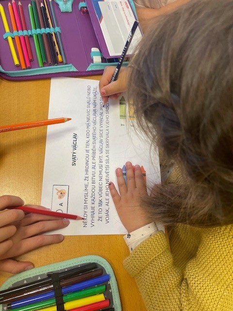 Prvňáci se dnes potkali,aby spolu pracovali.A potom se dozvěděli,proč se slaví teď v neděli.Václava už dobře známea víme, proč vzpomínáme.
