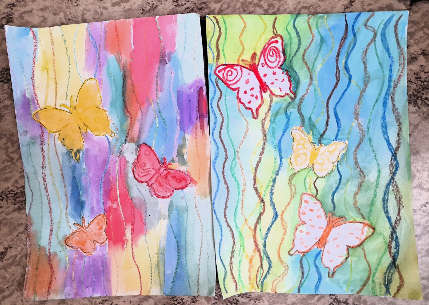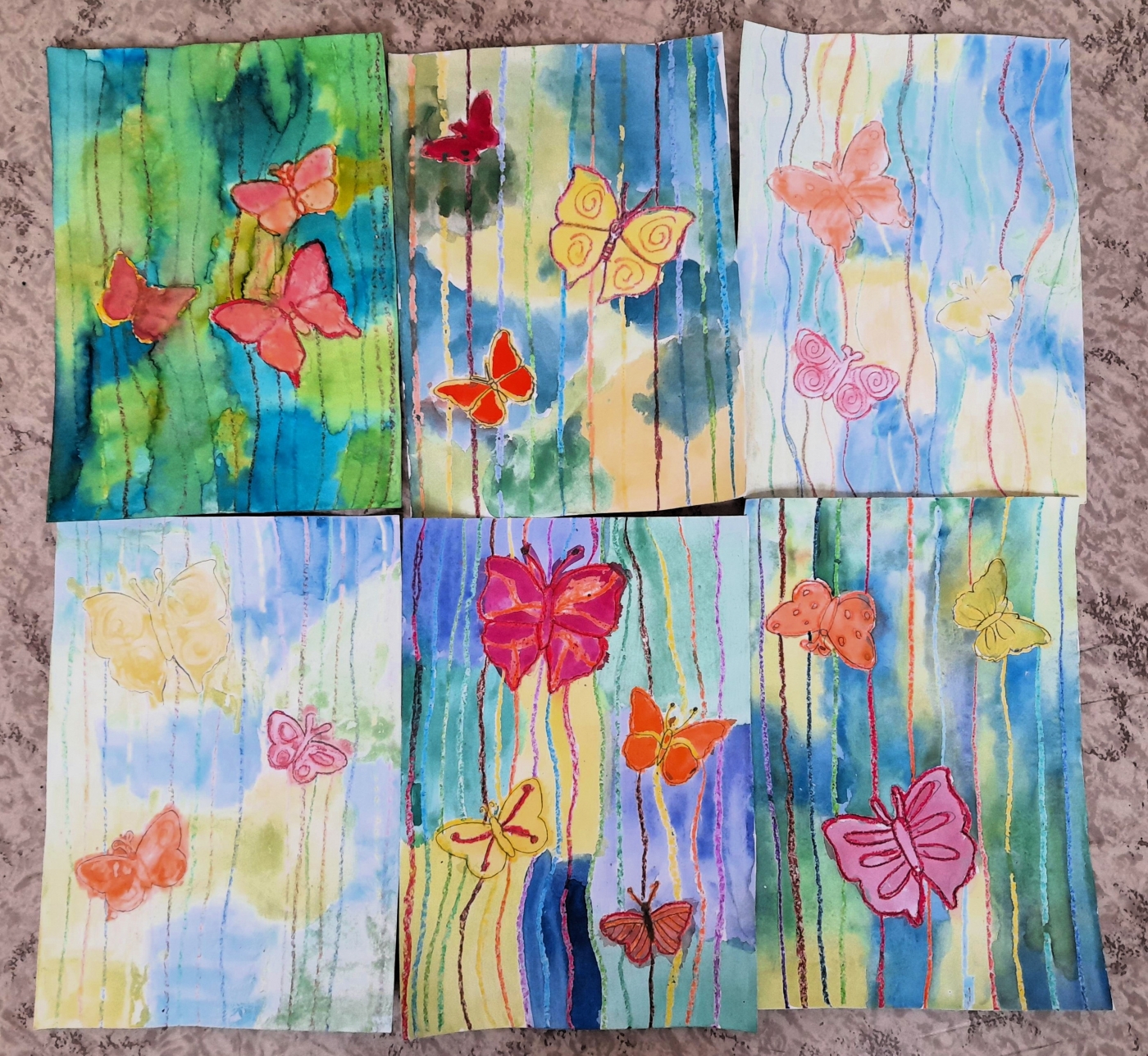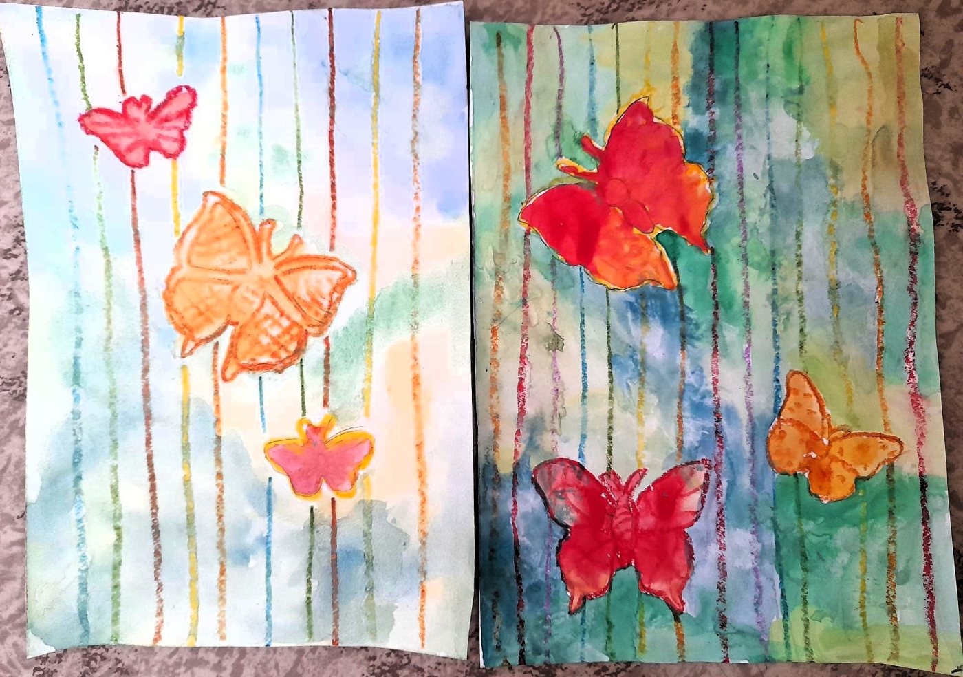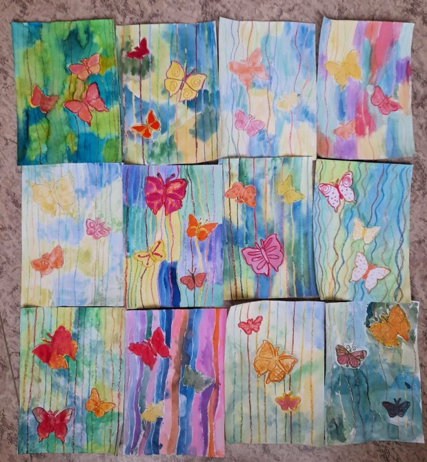 Někteří už netrpělivě očekávají příchod sluníčka a jarního počasí. Ve výtvarné výchově jsme použili techniku voskové rezerváže, abychom ztvárnili motýly na louce. Na kontury motýlů jsme použili žlutou, červenou a oranžovou voskovku. Jednotlivé klasy hrály všemi barvami. Zapouštěli jsme na pozadí barvu sluníčka, trávy a modré oblohy. Už se těšíme na jaro.
