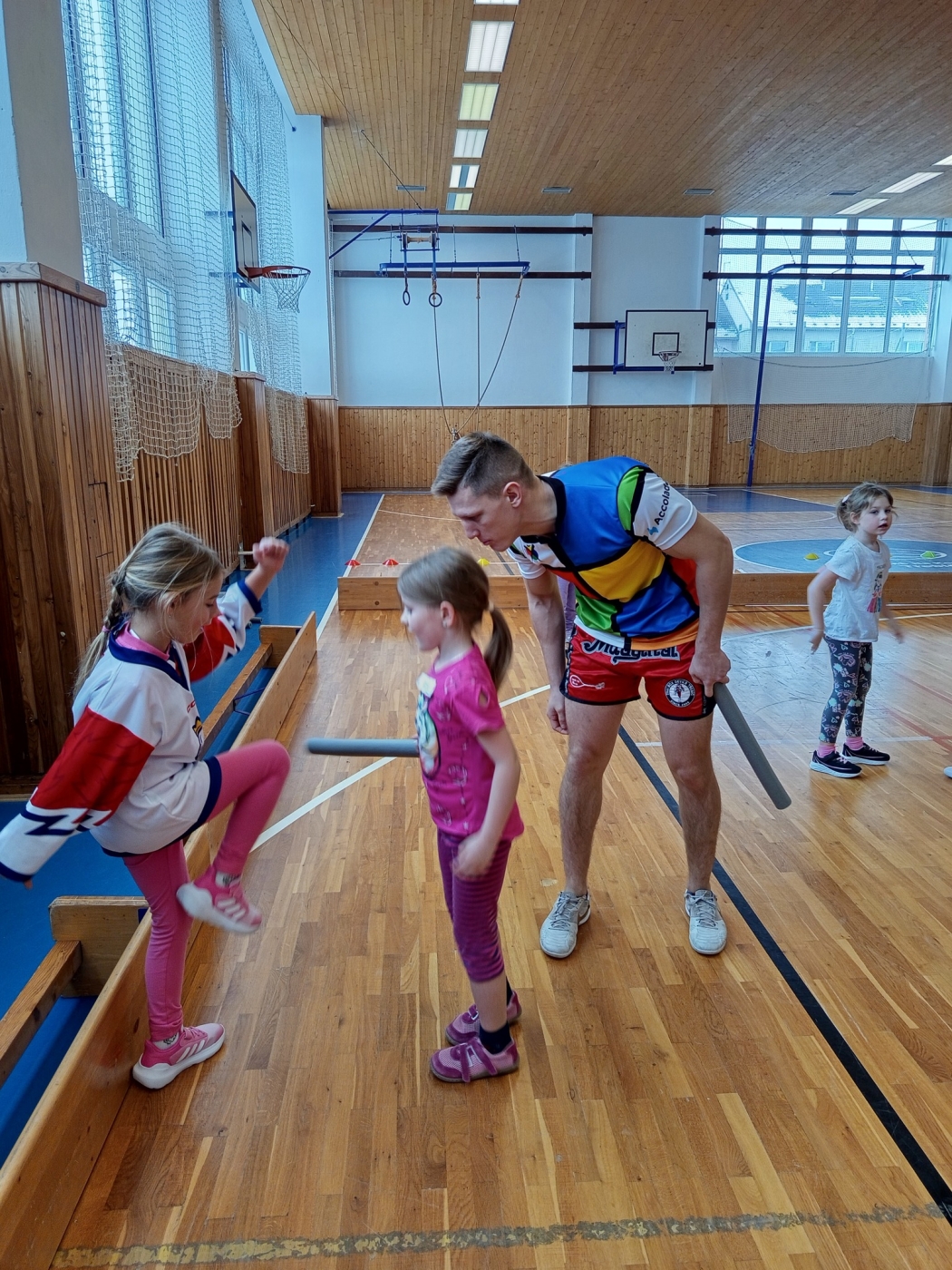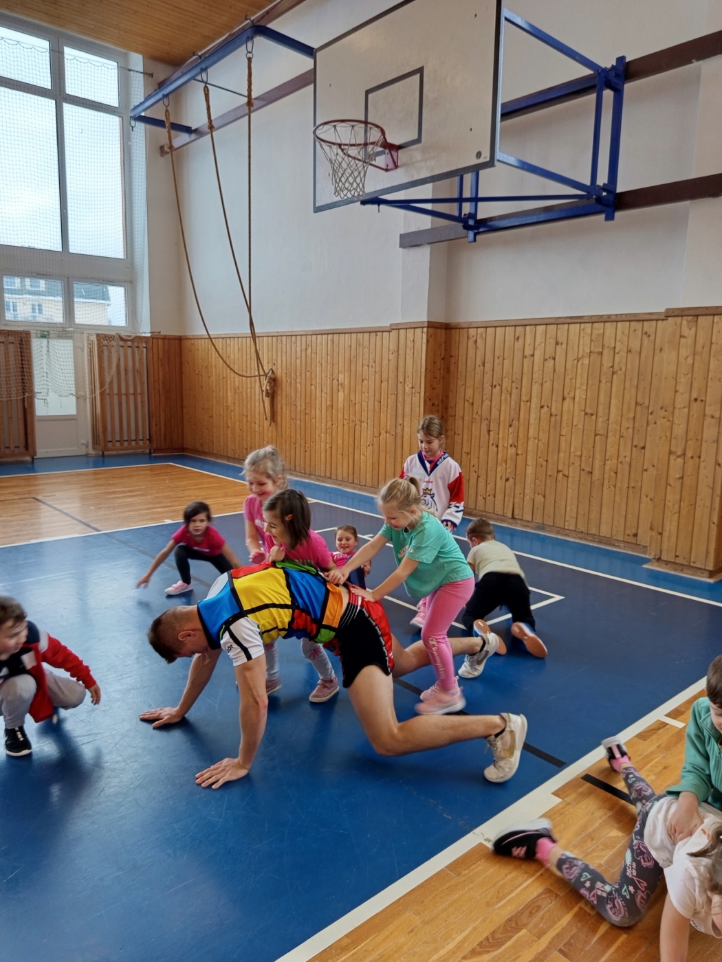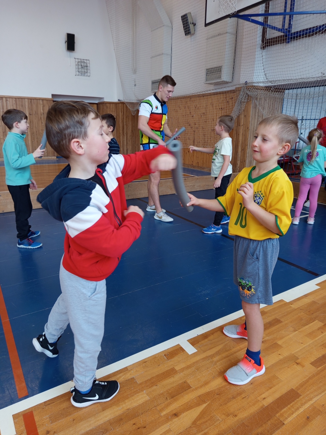 Prvňáci a bojová průprava neboli úpolovky? Že to nejde? Ale jde!Hodina plná aktivit, akce a reakce, pomůcek a především nám velel zkušený trenér.Moc jsme si to užili, díky trenére!