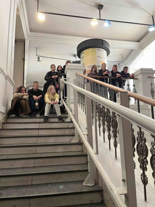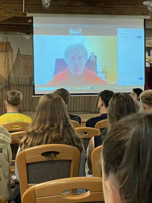 V úterý po snídani na nás čekal workshop: Efekt přihlížejícího a pak následovala individuální prohlídka expozic. Odpoledne jsme se všichni s velkým očekáváním sešli v půdním divadle v Magdeburských kasárnách, kde byla připravena on-line beseda s RNDr. Michaelou Vidlákovou (nar. 30. 12. 1936), která byla společně se svými rodiči vězněna v terezínském ghettu. Paní Vidláková je velmi milá, příjemná a kultivovaná starší dáma, která ráda hovoří s mládeží a ráda odpovídá na všetečné otázky dětí. A že jsme jich měli. Při jejím vypravování jsme obdivovali její sílu a odhodlání šířit povědomí o zrůdných činech nacistů a přiblížit období holocaustu. Nic z toho by nemělo být nikdy zapomenuto. Pak následoval workshop: Po stopách paměti, kde jsme za pomoci tabletů natáčeli reportáže o významných budovách města. Moc jsme si to užili. Program zakončilo večerní promítání filmu Musíme si pomáhat.