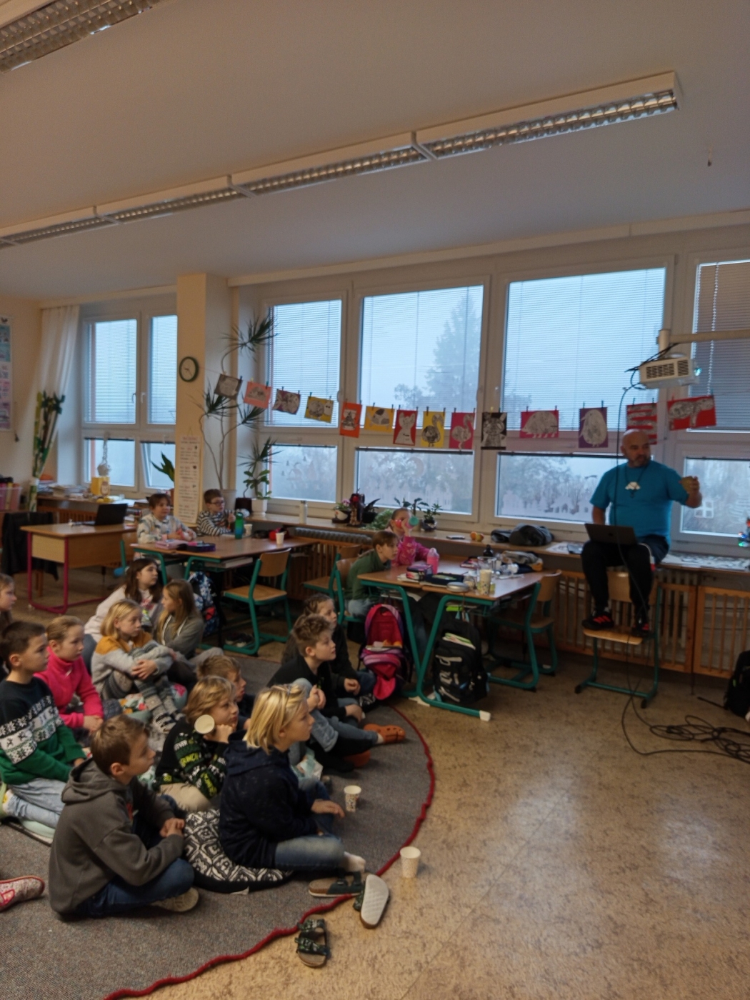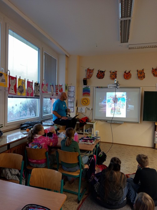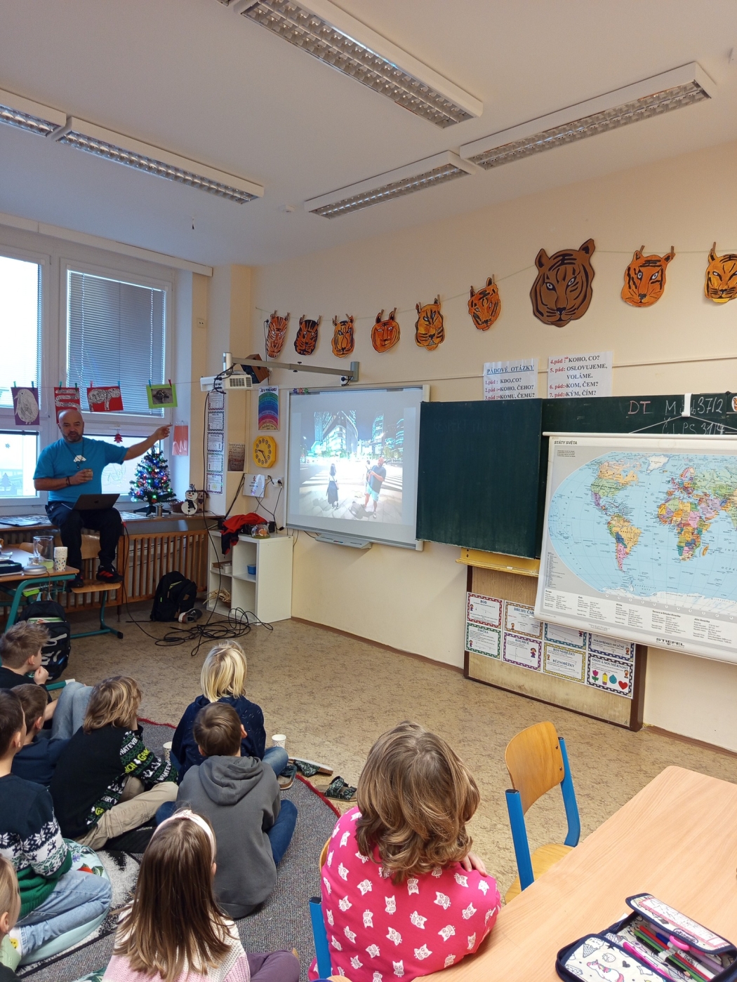 >Tygři ze 4.B a povídání o Japonsku s panem Jurajem Urbančíkem