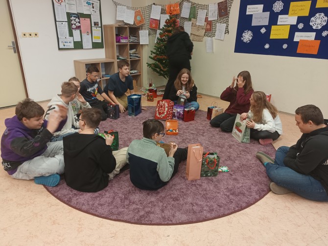 Třída 7.B si dnešní den užila ve vánoční náladě. Ráno jsme poseděli u stromečku, rozdali dárečky, popovídali si u cukroví a zahráli různé hry. Den jsme zakončili sportovně - bruslení na Hvězdě se vydařilo a udělalo za příjemně stráveným dopolednem hezkou tečku.