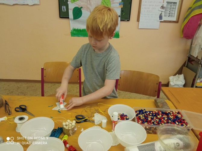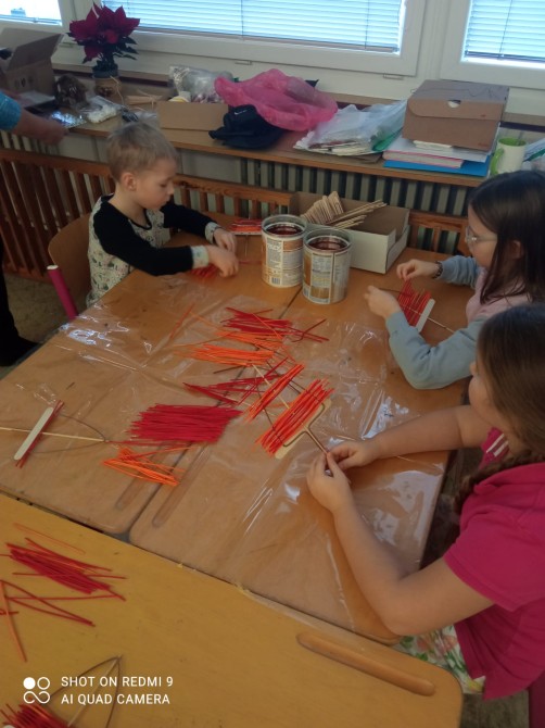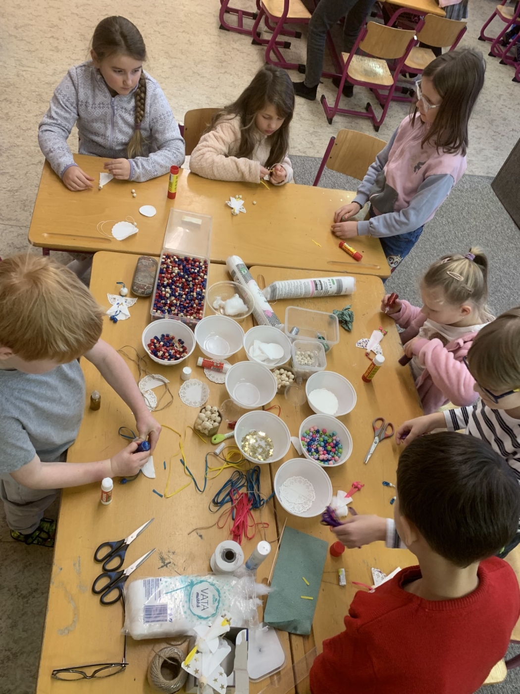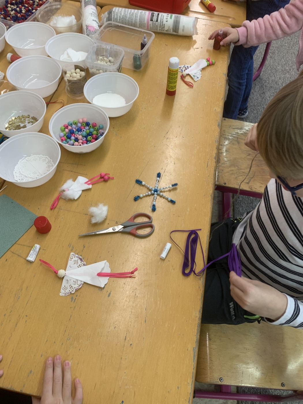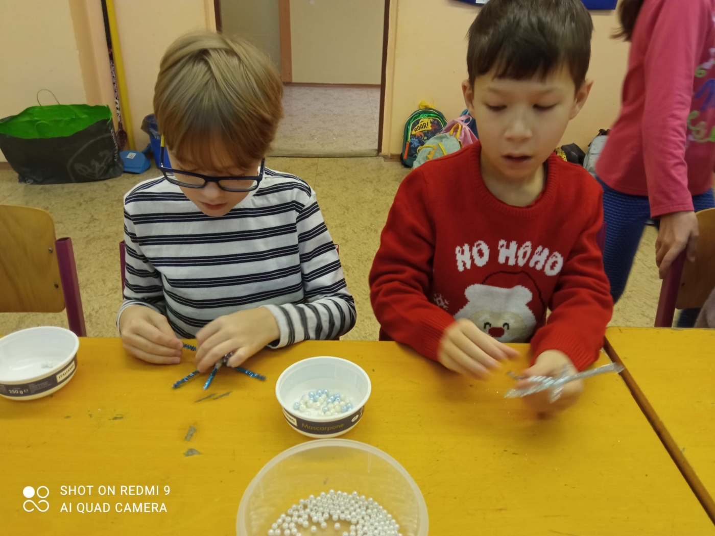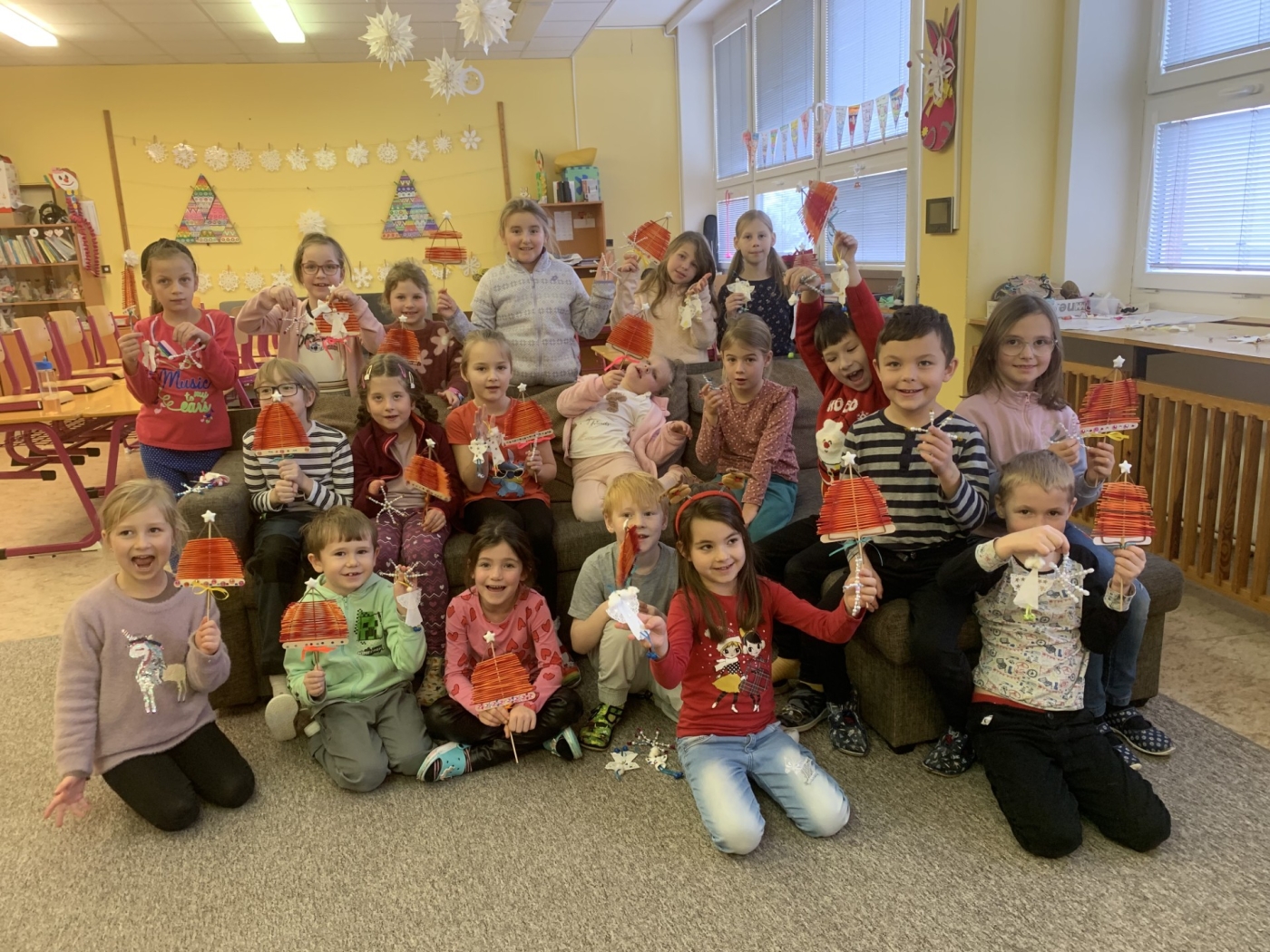 Adventní čas přímo vybízí k tvoření všeho druhu. Sobotní dopoledne 13. prosince proběhlo ve znamení rukodělného snažení pro děti ze školní družiny, které si zároveň krátily čas čekáním na Ježíška. Vyráběly korálkové hvězdy, stromeček z pedigu a andělíčky. Vymezený čas uběhl velmi rychle a příjemně, doplněný zpěvem a poslechem vánočních koled. Po celou dobu z dětí vyzařovala dobrá nálada a uspokojení z vlastnoručně utvořené výzdoby. Odměnou jim byla nadšená pochvala a obdiv rodičů. Bylo se čím pochlubit!