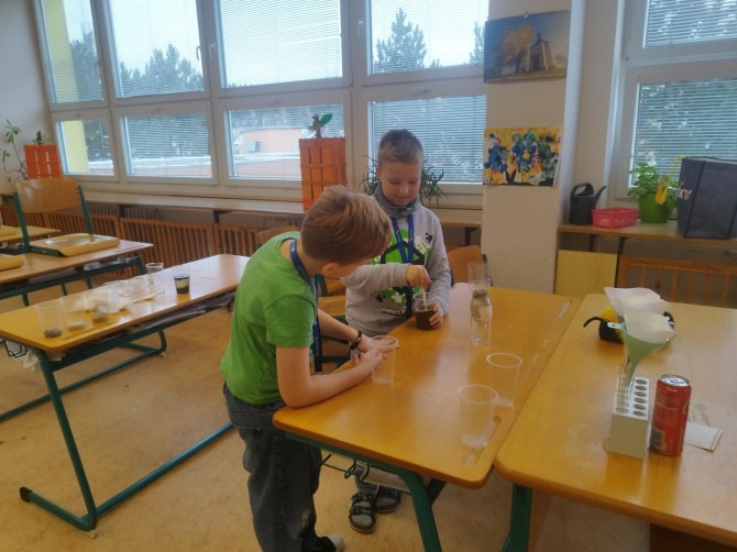 Velký úspěch měla také filtrace, při které si děti vyzkoušely, jak lze vodu čistit, nebo oblíbená sopka ze smíchání jedlé sody a octa. Nechyběl ani pokus s tančícími hrozny, který názorně ukázal působení plynu ve vodě.