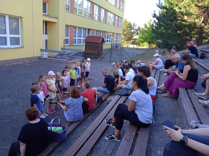Třída Kvítečků (2. A) se sešla ve čtvrtek 4. září u táboráku, kde se nejen opékaly dobroty, ale hlavně sdílely zážitky z prázdnin. Prázdninové kufříky plné fotografií a obrázků všem připomněly, kolik krásného se během léta prožilo. Děkujeme všem za milou atmosféru a těšíme se na další společné chvíle!