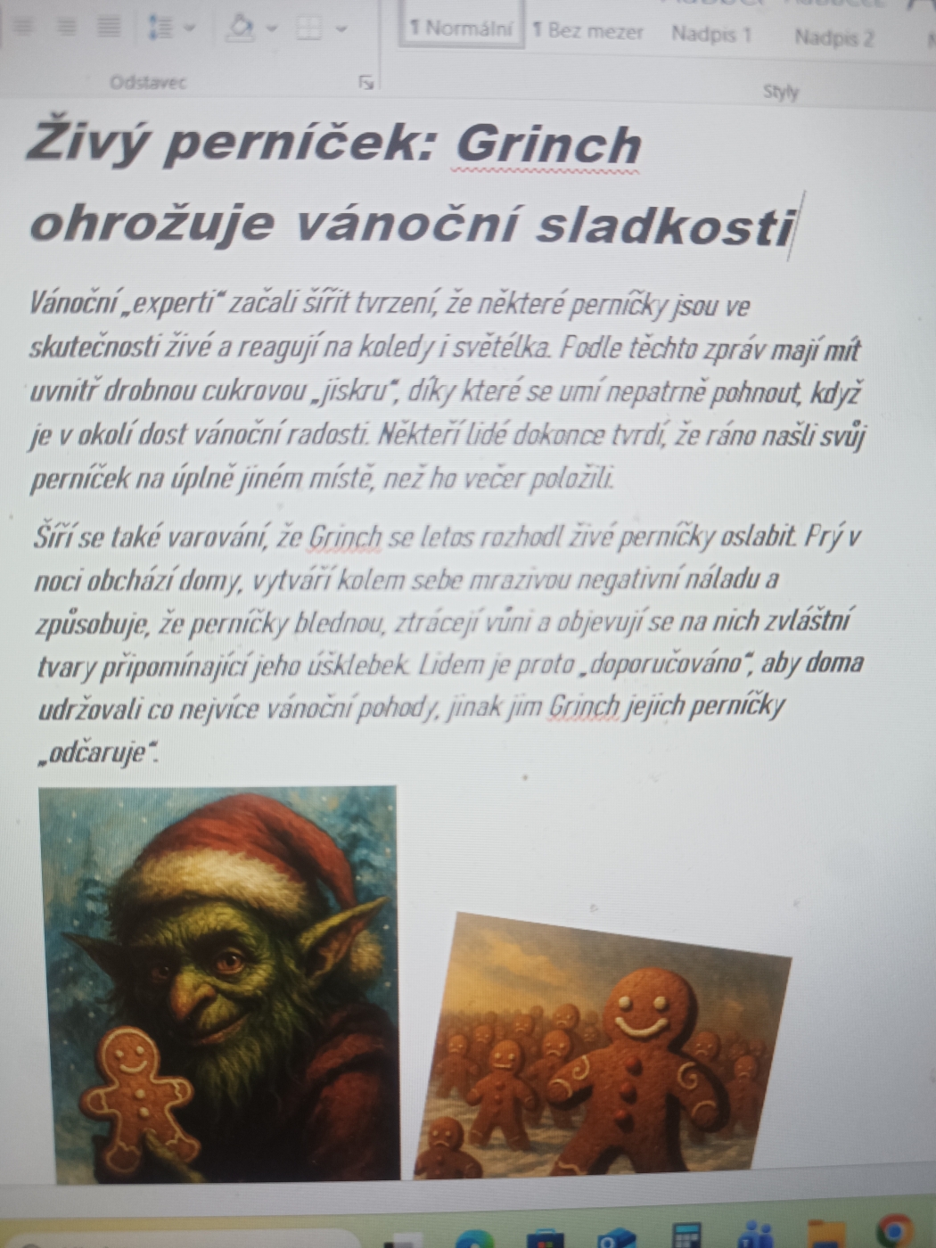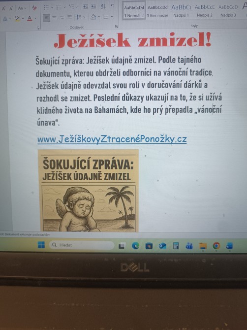 Tento týden se žáci 7.B v hodinách českého jazyka zaměřili na to, jak se v dnešní době šíří dezinformace a proč je důležité umět je rozpoznat. Využili jsme příběh o Grinchovi, který se rozhodl jít s dobou. Tentokrát už nekrade dárky – místo toho se pustil do šíření strachu prostřednictvím falešných zpráv, kterými chce všem opět zkazit Vánoce. A protože jsme chtěli přijít tomu všemu na kloub, stali se na chvíli „Grinchem samotní žáci. V první hodině se naučili rozlišovat seriózní sdělení od manipulativních textů. Ve druhé hodině si pak každý vyzkoušel vytvořit vlastní „grinchovskou" dezinformaci. Žáci tak na vlastní kůži zjistili, jak snadno může nepravdivá zpráva vzniknout a jak rychle by se mohla šířit. Práce bylo více než dost, ale nakonec jsme si stihli i zatančit.