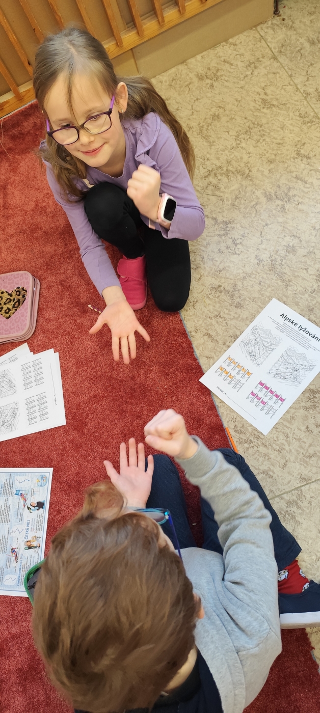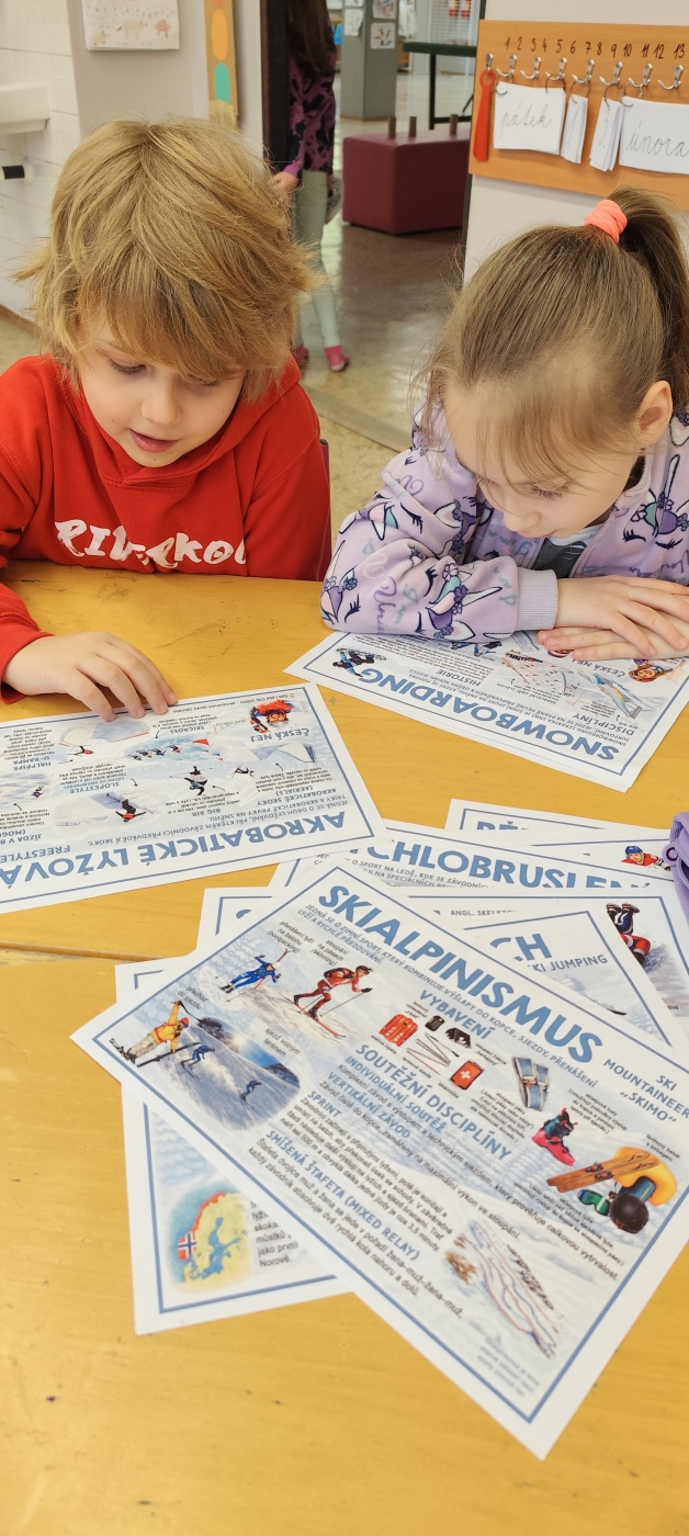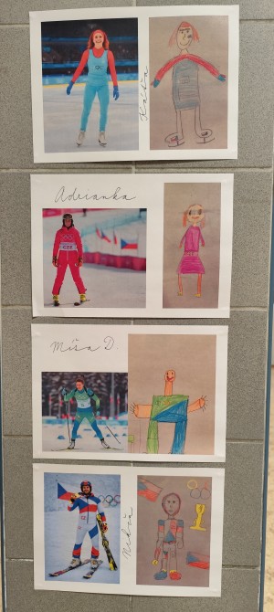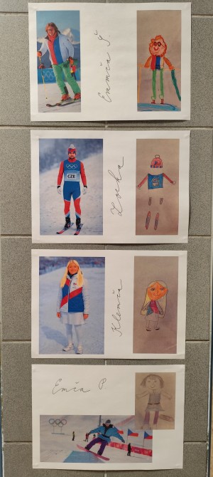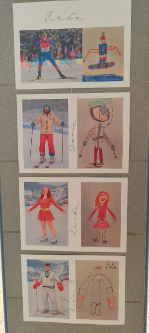 Pondělí 16. 2. patřilo olympiádě. Z dětí se stali návrháři a s pomocí umělé inteligence jsme vytvořili úžasné návrhy olympijské výzbroje a výstroje. ZOH pokračovaly jednotlivými disciplínami. Děti si vyzkoušely biatlon, krasobruslení, curling, alpské lyžování a další. Nechybělo také soupeření v tom, kdo první správně sestaví na čas vlajku ČR, tvořily se olympijské kruhy a medaile. Všichni žijeme zimní olympiádou!