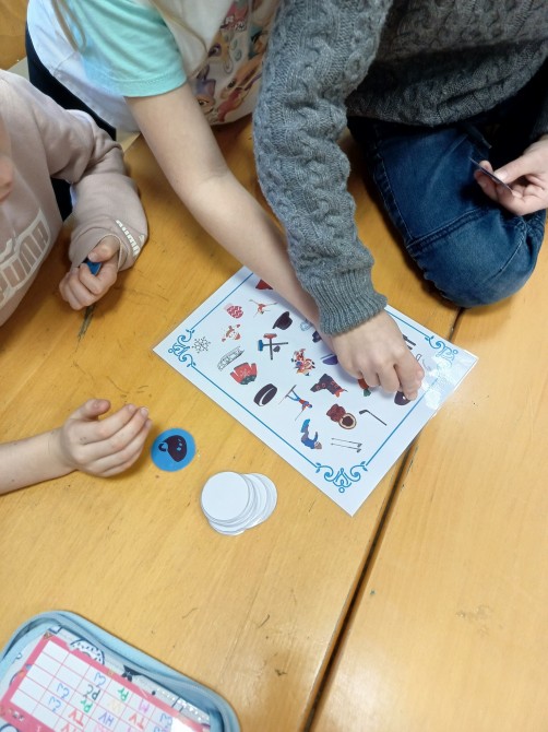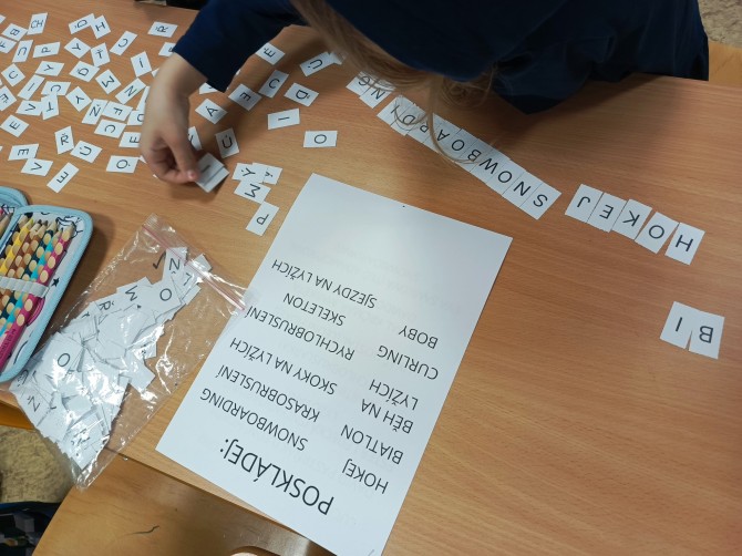 Dnes jsme s dětmi začali centra s tématem Zimní olympijské hry. Ráno jsme měli na tabuli nachystané čtení olympijských slov a měli jsme nakreslit, co jsme se dočetli.