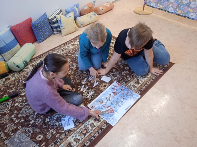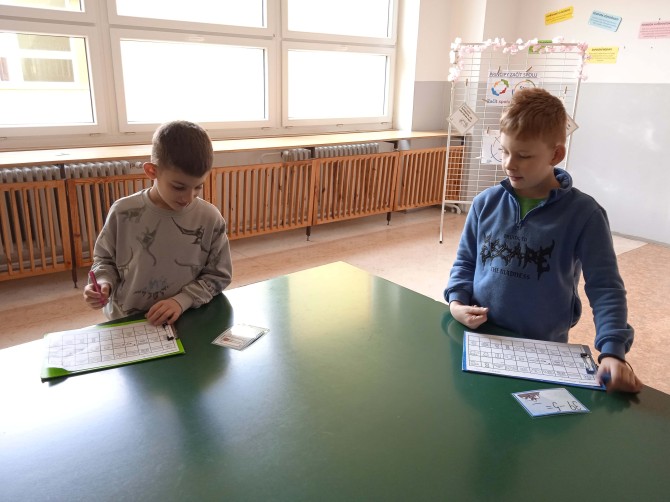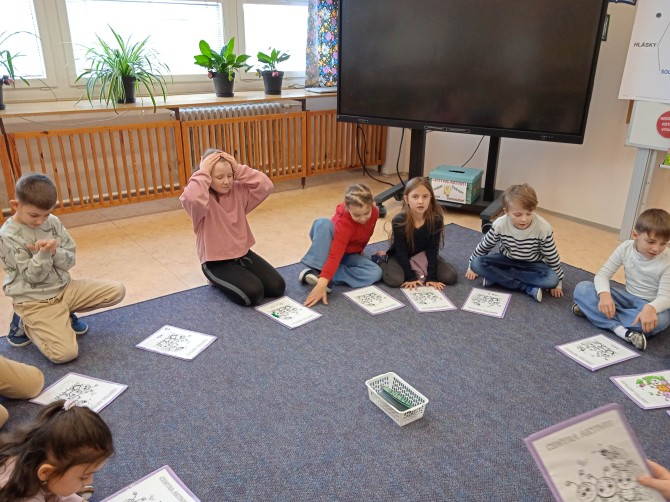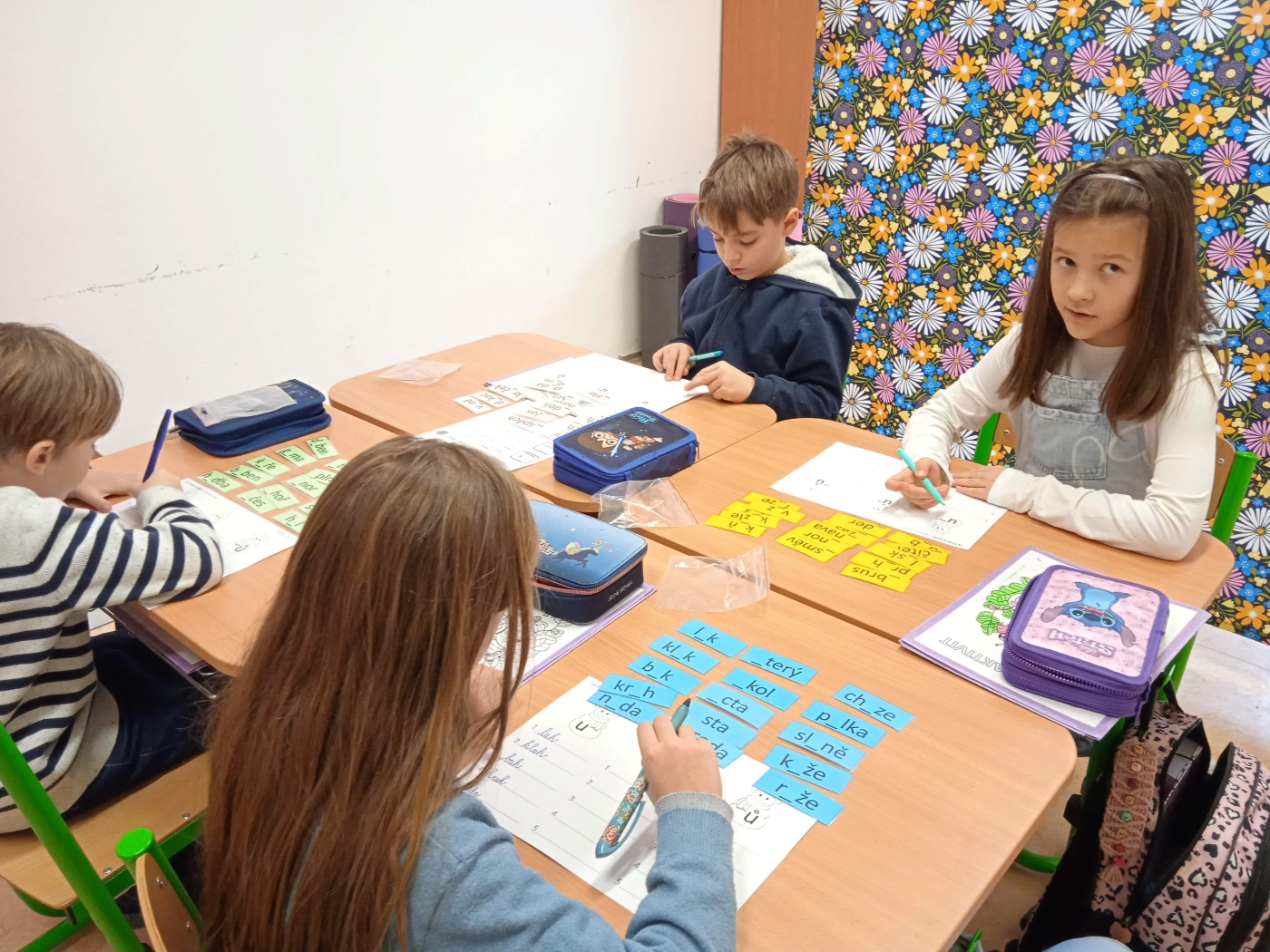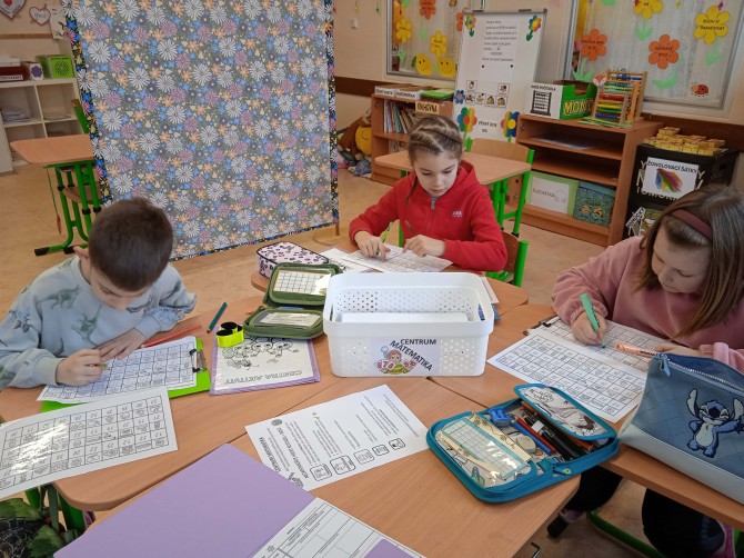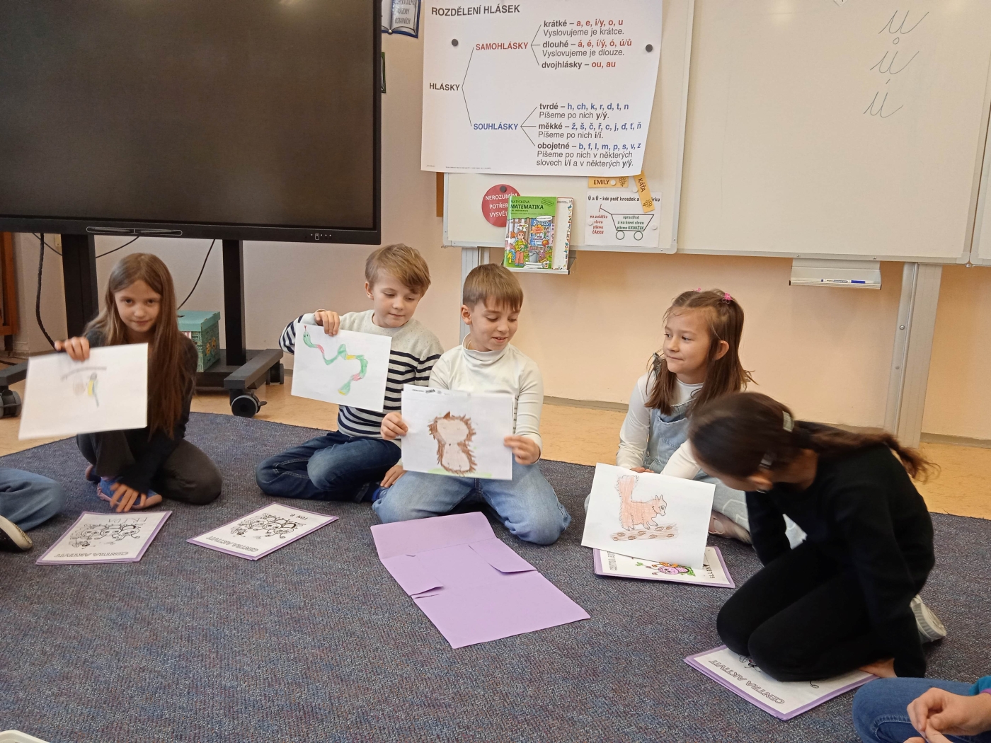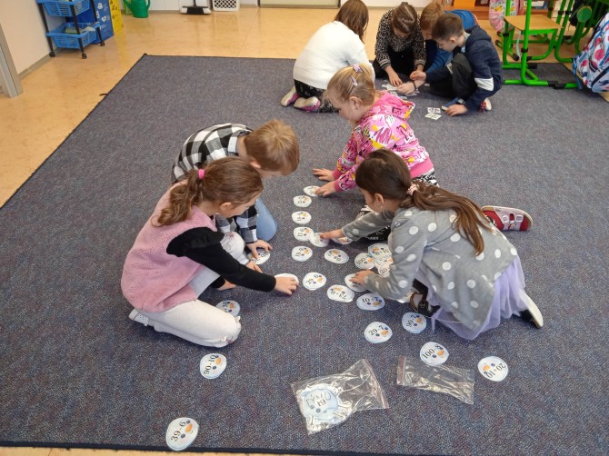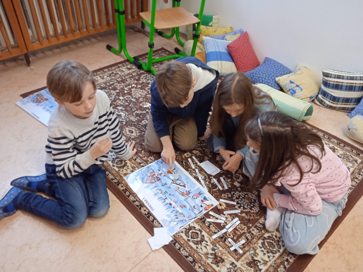 V centru Čtení a psaní se druháčci zaměřili na zimní krajinku. Trénovali čtení s porozuměním a následně se pustili do procvičování pravopisu. Pomáhali jim u toho sněhuláci, s jejichž pomocí žáci doplňovali a psali u, ú, a ů.
