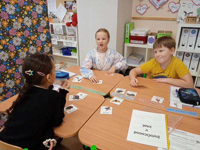 V centru Objevy se z žáků stali malí badatelé. Zjišťovali, jak zvířata v přírodě přezimují, a své poznatky zpracovali do vizitek o vybraných zvířatech.