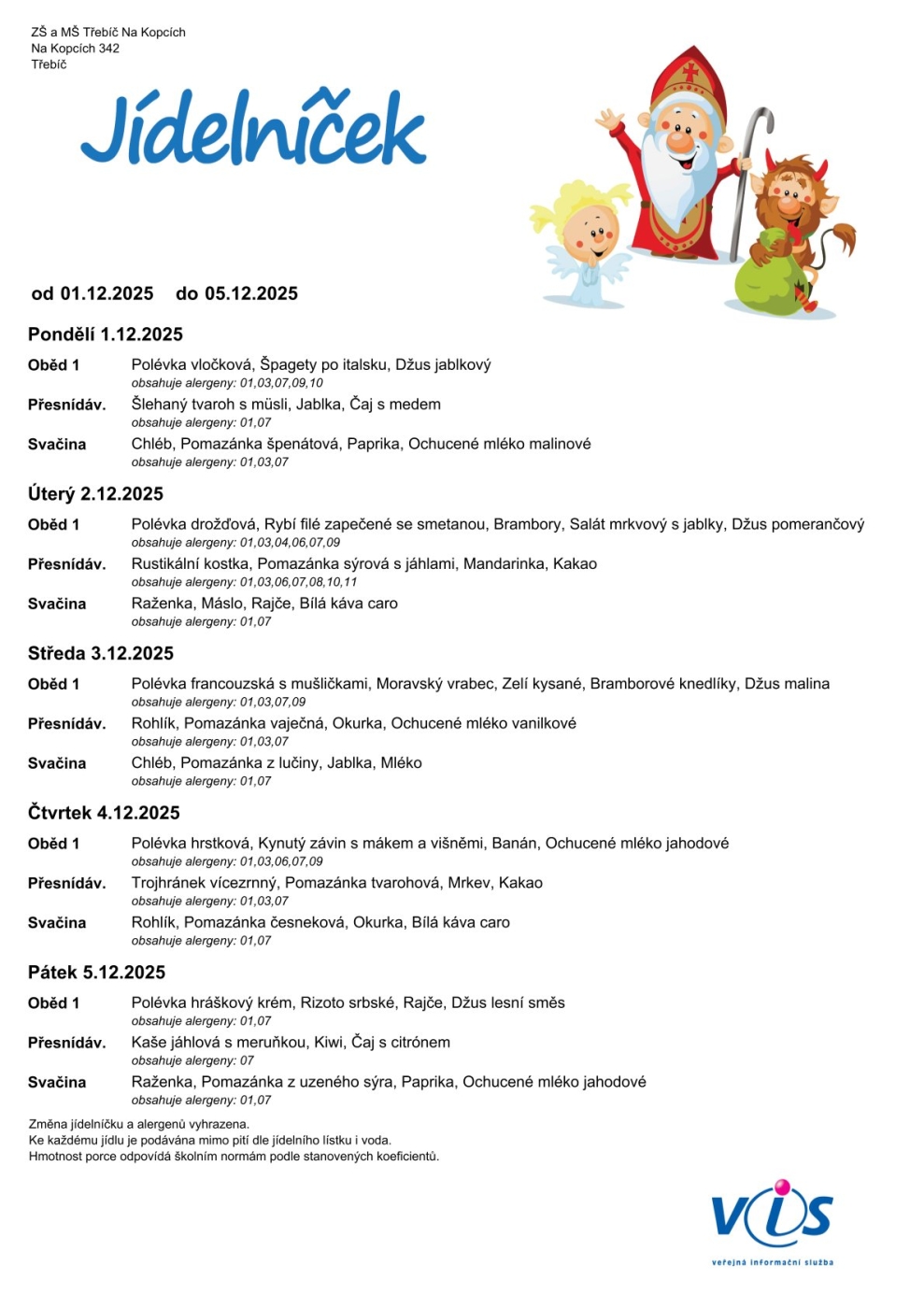Jídelníček 1. - 5. 12.
