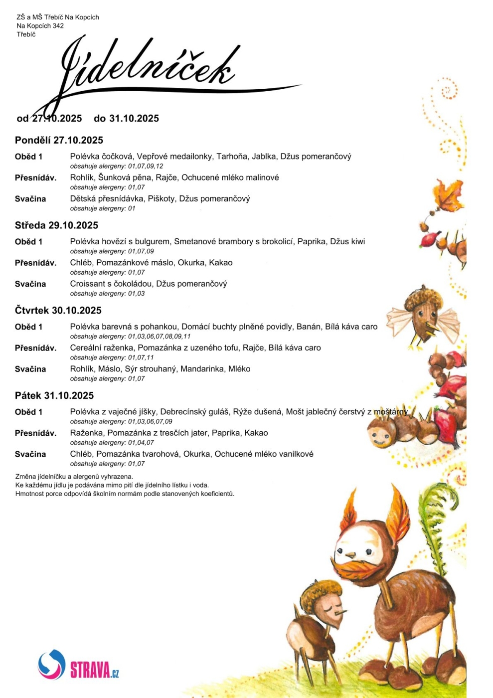 Jídelníček 27. - 31. 10.
