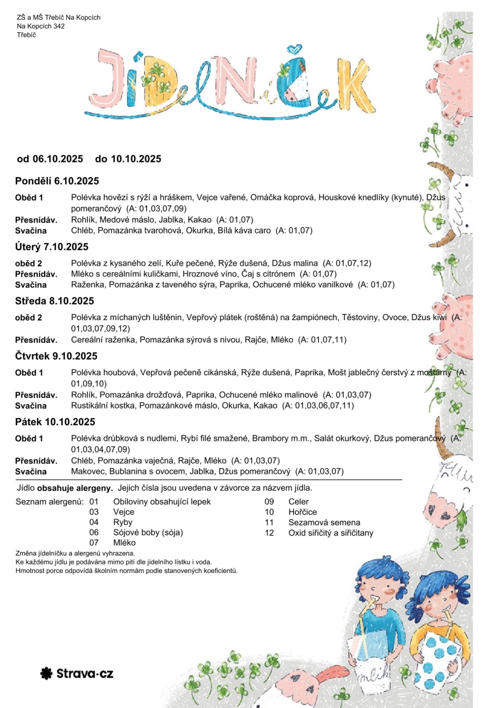 Jídelníček 6. - 10. 10.