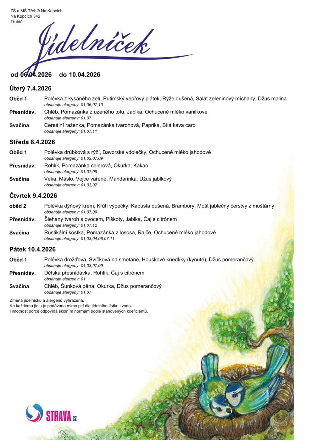 Jídelníček 7. - 10. 4.