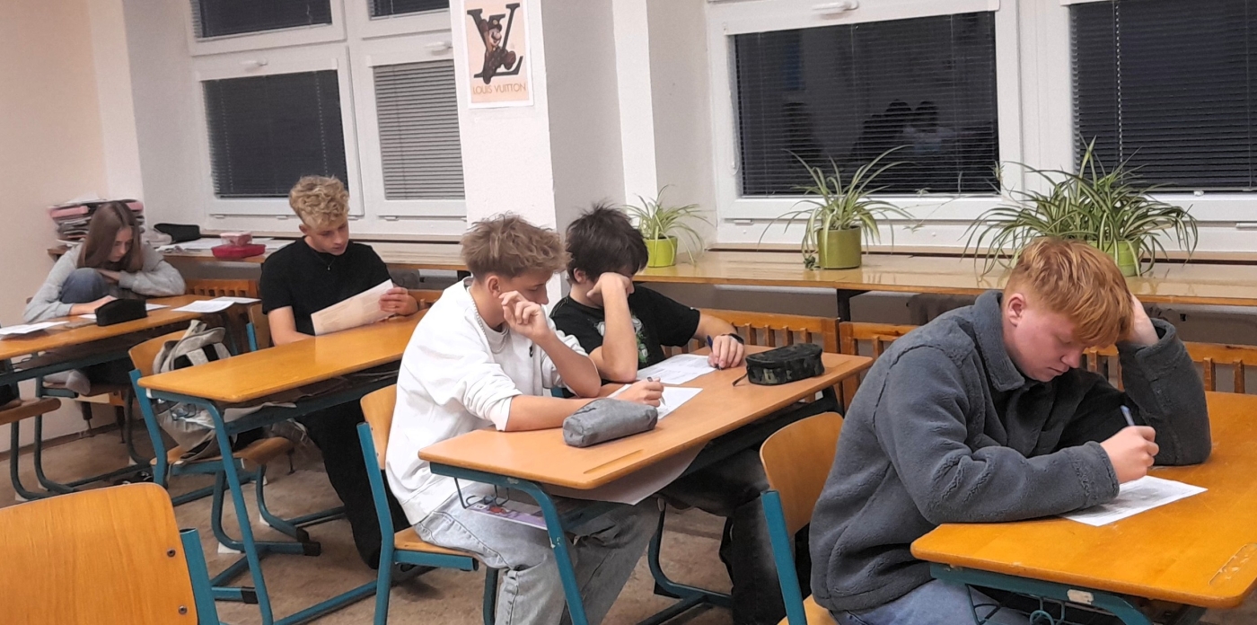 Od poloviny září se žáci 9. ročníku připravují v kroužku českého jazyka na přijímací zkoušky na střední školy. Postupně opakují učivo se zaměřením na didaktické testy z minulých let. Individuální práci střídá kontrola, případné vysvětlení a opravení. Soustavná příprava a spoléhání na sebe sama by měla vést k získání jistoty, odbourání trémy a k co nejlepším výsledkům u přijímacích zkoušek.