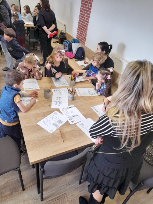 Pro děti jsme si připravili lekci, kde procvičovaly prostorovou orientaci a dolní kličku jako další grafomotorický prvek. Děti za asistence rodičů pracovaly na několika stanovištích, kde lepily, stříhaly, řadily a vybarvovaly různé obrázky.
