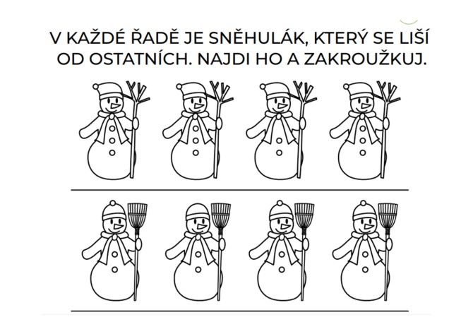 Ve čtvrtek 8. 1. 2026 proběhlo páté setkání naší PŘÍPRAVKY PRO PŘEDŠKOLÁKY. Pro děti byla připravena lekce s procvičováním zrakové analýzy a syntézy spolu se dvěma dalšími grafomotorickými prvky - elipsou a spirálou. Všechny činnosti byly motivované zimním obdobím a sněhulákem.