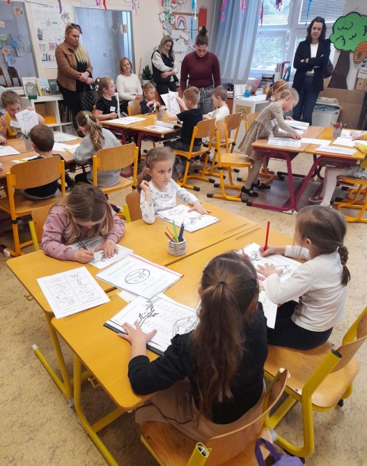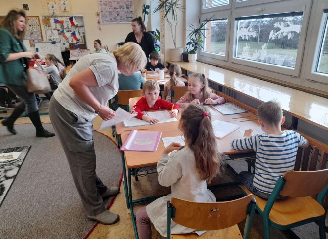 Ve čtvrtek 26. března 2026 proběhla devátá lekce naší PŘÍPRAVKY PRO PŘEDŠKOLÁKY. Děti společně s rodiči se sešli v obvyklých prostorách, kde byli rozděleni do skupin k vyučujícím našeho prvního stupně. Pro rodiče byla připravena dvouhodinová beseda s Mgr. Hanou Otevřelovou, která jim teoreticky i prakticky vysvětlila, co vše patří a jak vypadá školní zralost. Děti ve třídách se zabývaly sluchovou diferenciací a také horní kličkou jako důležitým grafomotorickým prvkem. Polovinu lekce strávily také dokončením svého výrobku v keramické dílně, ten si odnesou jako památku na celý cyklus na poslední lekci 23. dubna. Pracovní list ke stažení níže.