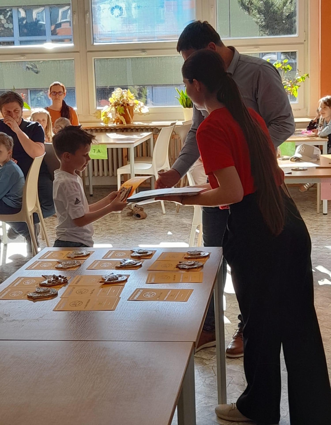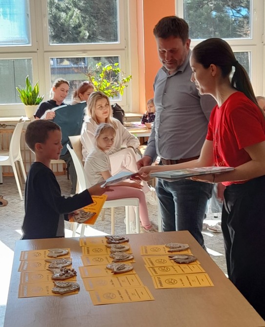 Ve čtvrtek 23. dubna 2026 se uskutečnila poslední desátá lekce cyklu naší PŘÍPRAVKY PRO PŘEDŠKOLÁKY. Pro děti za doprovodu rodičů byl připraven mírně odlišný program, chtěli jsme jím celé rodiny blíže seznámit s prostory naší školy. Děti za asistence rodičů měly obejít deset stanovišť na různých místech budovy, kde plnily úkoly motivované postavami z večerníčků. Závěr lekce i celého cyklu patřil slavnostnímu zakončení v jídelně školy, kde děti obdržely upomínkový list, drobnou odměnu a hotový výrobek z keramické dílny, na kterém v uplynulých lekcích pracovaly. Děti, které se nemohly zúčastnit, mají vše připravené na sekretariátu školy denně 6 – 14:30.
