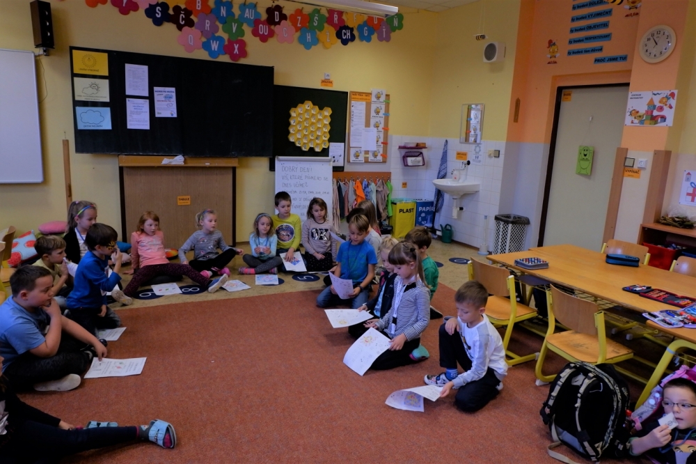 Nedílnou součástí dne je hodnocení práce každé skupiny a prezentace výsledků činnosti dětí v kruhu. Tam se také děti před odchodem loučí.