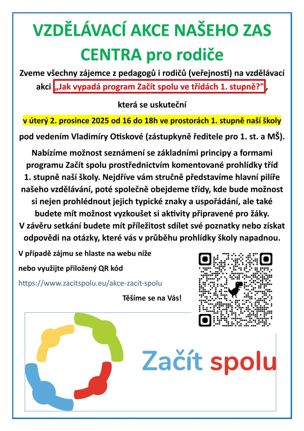 >Akce ZaS centra "Jak vypadá program Začít spolu ve třídách 1. stupně?" 2. 12. 2025