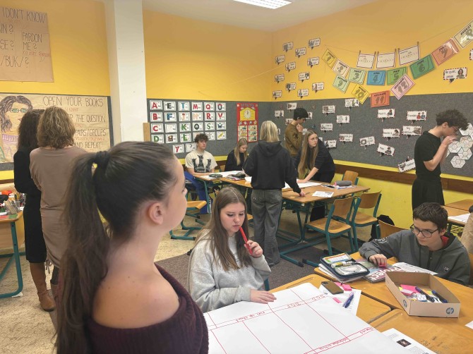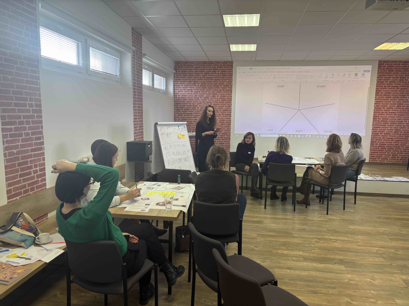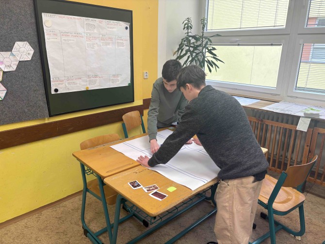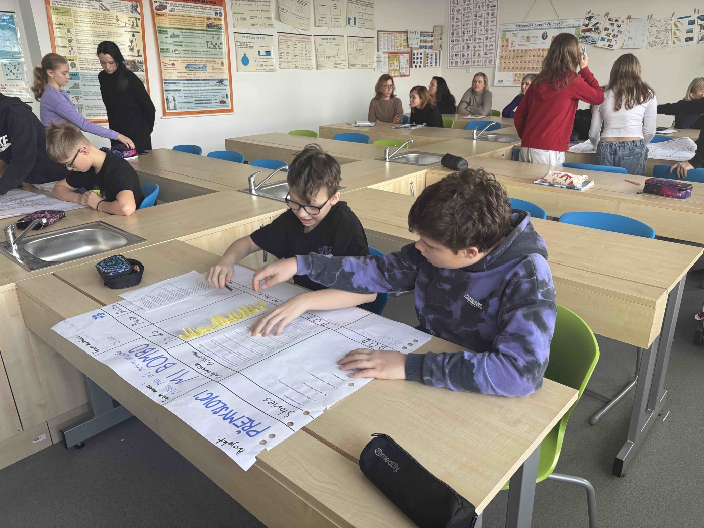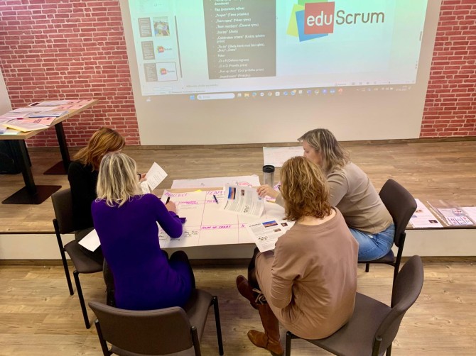 V úterý 27. ledna 2026 dopoledne proběhla první vzdělávací akce našeho ZaS centra určená pro pedagogy 2. stupně základních škol, kteří projevili zájem o metodu eduScrum. Na akci se se přihlásilo 12 pedagogů z blízkého i vzdálenějšího okolí, kteří dostali možnost nahlédnout pod pokličku poměrně nové metody, která nabízí inovativní přístup pro výuku na 2. stupni ZŠ, jíž se dá v jistém ohledu navázat na výuku v centrech aktivit, která jsou typickou formou programu Začít spolu. Po seznamovacích aktivitách se účastníci dozvěděli základní informace o naší škole, o metodě eduScrum, následně si prakticky vyzkoušeli vytvořit týmy a připravit si samotnou práci na projektu prostřednictvím diskusí, argumentování a domlouvání se. Po celou dobu panovala příjemná tvůrčí atmosféra plná zajímavých a podnětných dotazů. Druhá polovina určeného času patřila náslechům ve výuce, kde zrovna metoda eduScrum probíhala, a následné reflexi všeho, co se účastníci během celého dopoledne dozvěděli nebo viděli na vlastní oči.
